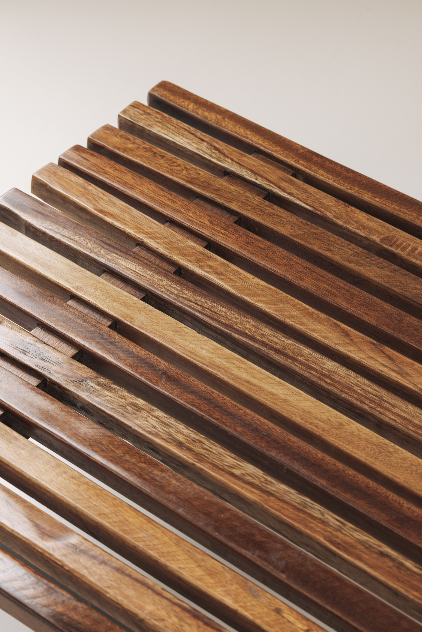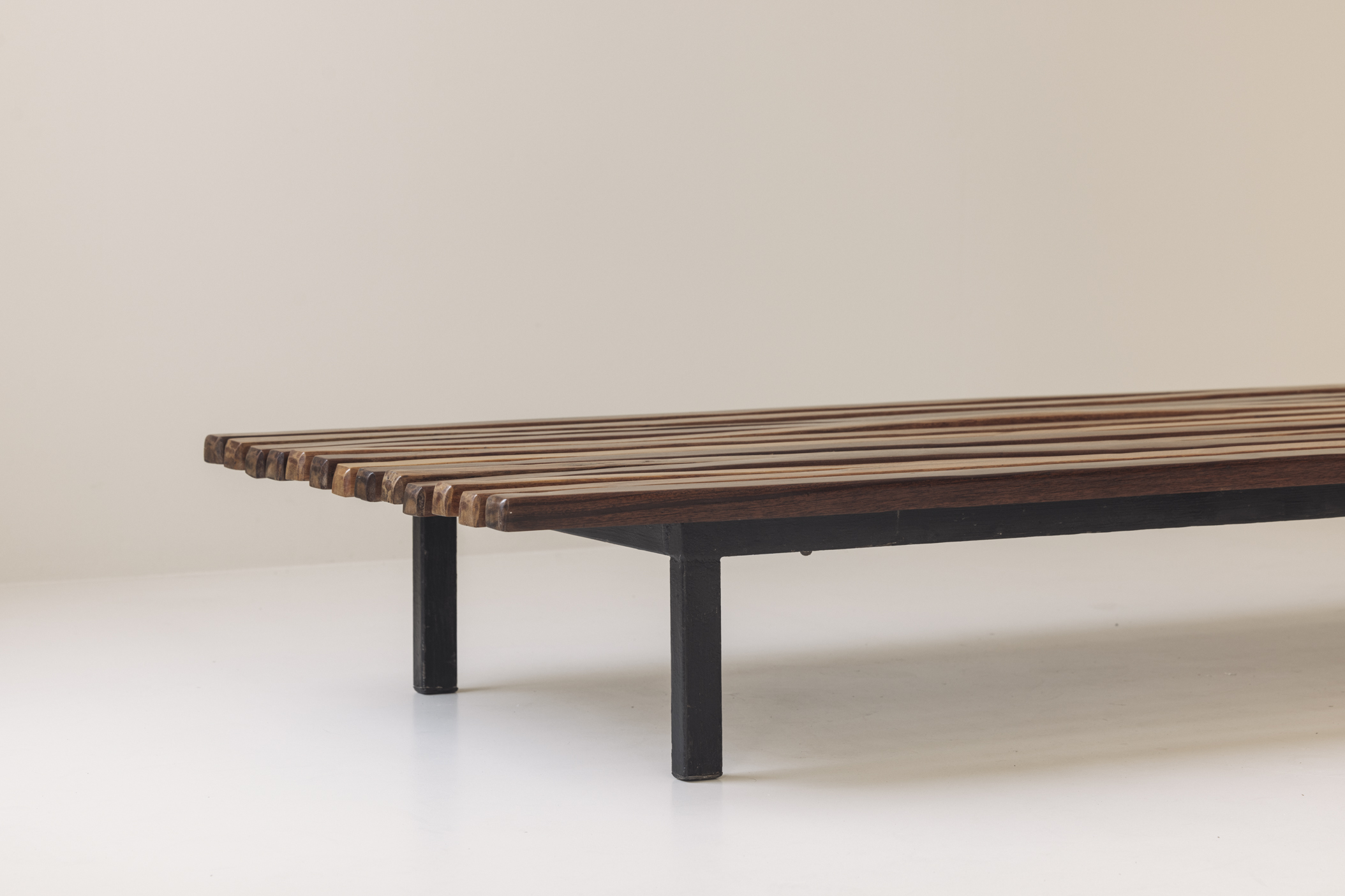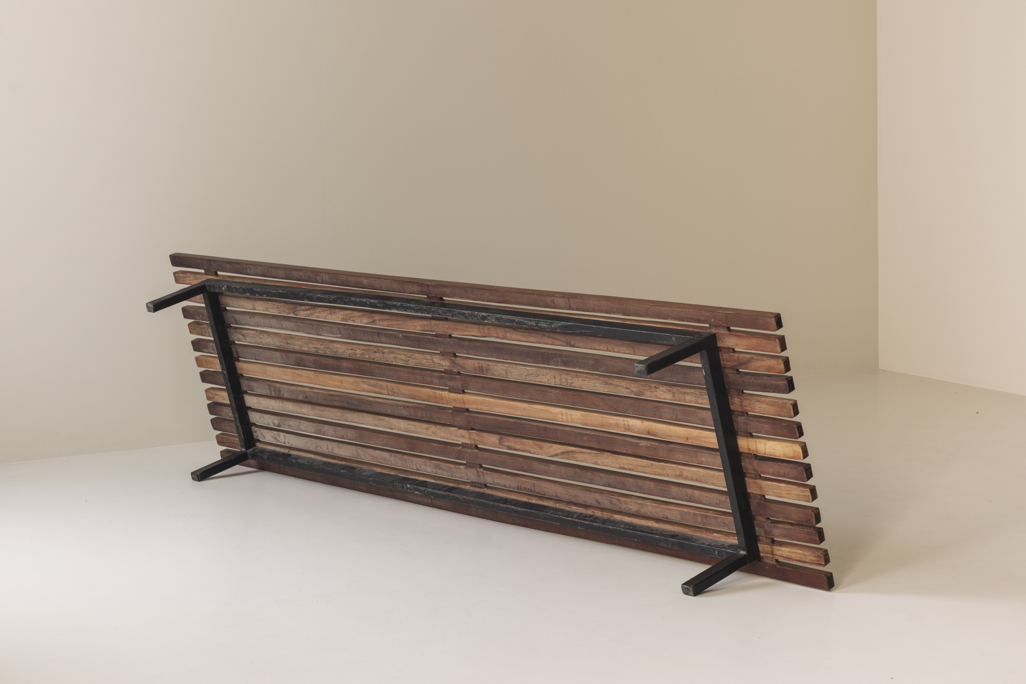 This rare “Cansado” bench was designed in 1958 by Charlotte Perriand as part of her commission for the newly built mining town of Cansado in Mauritania. Conceived for workers’ housing, the design embodies Perriand’s dedication to functional, honest furniture that could be produced with efficiency while maintaining architectural elegance. Executed in solid wood, the bench is defined by its clean lines and strong proportions, with a robust plank seat resting on block supports. The minimalist form reflects Perriand’s belief in essential design stripped of ornament, where materiality and function take precedence. Its warm, natural patina only enhances the timeless simplicity of the piece. A rare surviving example from this historic project, the Cansado bench represents Perriand’s ability to merge modernist ideals with human-centered design. Both utilitarian and sculptural, it is a collectible work that carries the spirit of mid-century design history into the present.