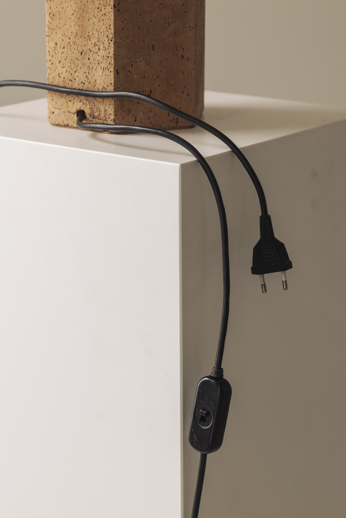 Discover this rare cork table lamp designed by Ingo Maurer for M Design, Germany 1970s. This sculptural table lamp is a striking example of Maurer’s early experimental work with natural materials. The lamp features a fully geometric hexagonal structure crafted entirely from natural cork, including both the base and the faceted shade. The warm organic surface is beautifully textured with natural pores and tonal variations, giving each lamp a unique character. The architectural form reflects Maurer’s fascination with simple geometry, material honesty, and atmospheric light. When illuminated, the cork softly diffuses the light, creating a warm ambient glow that enhances the natural richness of the material. This model is extremely rare and seldom seen on the market, particularly in this signed version. It represents an unusual and collectible piece from Maurer’s early design period before his later iconic lighting experiments. The underside of the lamp retains the original Design M manufacturer’s mark and signature, confirming authenticity. A remarkable statement piece for collectors of important 20th-century design, German modernism, and Ingo Maurer works.