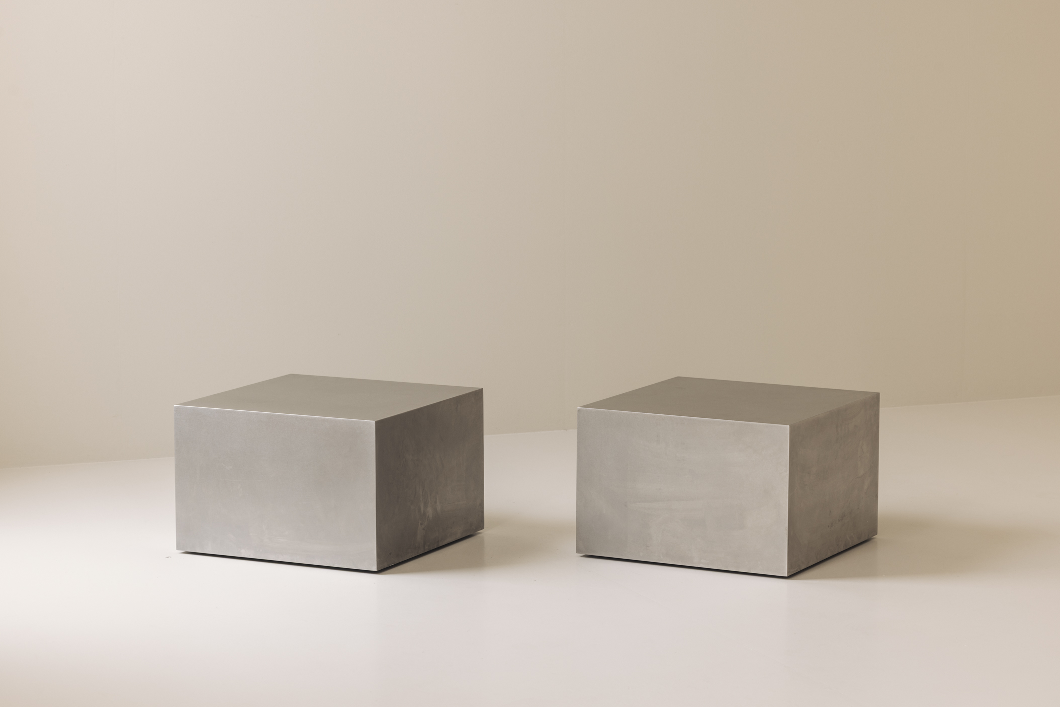 Sleek, versatile, and undeniably stylish, this pair of stainless steel Modernist side tables embodies the bold, functional design of the 1980s. Sourced in France, each table features a clean cube form with crisp lines and a polished steel finish that reflects light beautifully. Mounted on discreet wheels, they move effortlessly, making them perfect as side tables, nightstands, or mobile display stands. Their minimalist silhouette blends seamlessly into a variety of interiors—from industrial lofts to contemporary spaces—while their reflective surfaces add a touch of luxury.